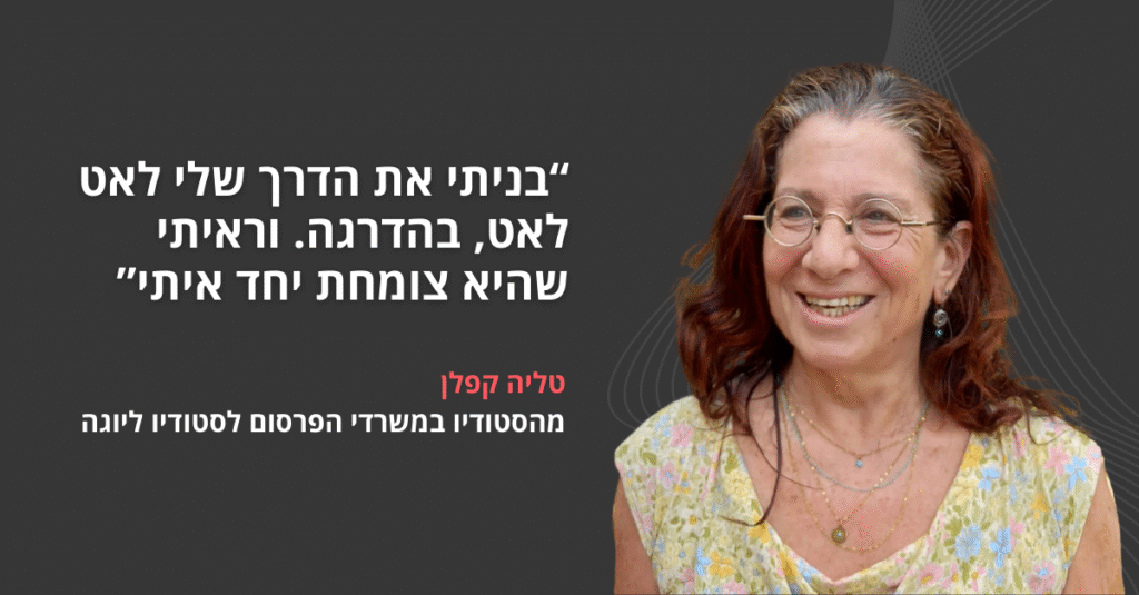 אחרי שנים ככדורסלנית בליגות הבכירות וכגרפיקאית במשרדי פרסום גדולים, טליה קפלן לקחה את התשוקה לתנועה ואת היצירה שבערה בה תמיד — והפכה אותם לסטודיו עצמאי ליוגה שבו היא מלווה תלמידים ותלמידות לגלות חיבור עמוק בין גוף, נפש ותודעה.