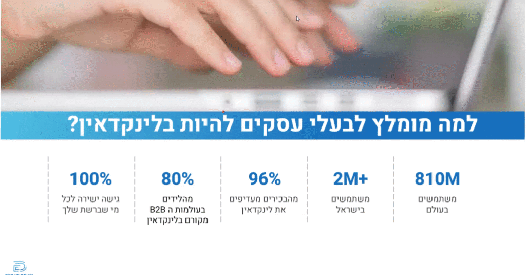 הדרכה לבעלי עסקים קטנים, פרילנסרים, יועצים ונותני שירות שרוצים להרחיב את קהל הלקוחות העסקיים שלהם (B2B) באמצעות לינקדאין, ולהבין אחת ולתמיד איך למנף את הרשת ליצירת לידים איכותיים.